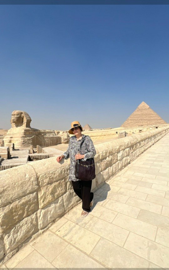 وجود القاصة الأخت ليلى العبدلاوي في مصر المحروسة بعناية الله.. أمام أبي الهول و الأهرامات.. أوحى ما أوحى ، فمازحتها بهذه السّجعية: